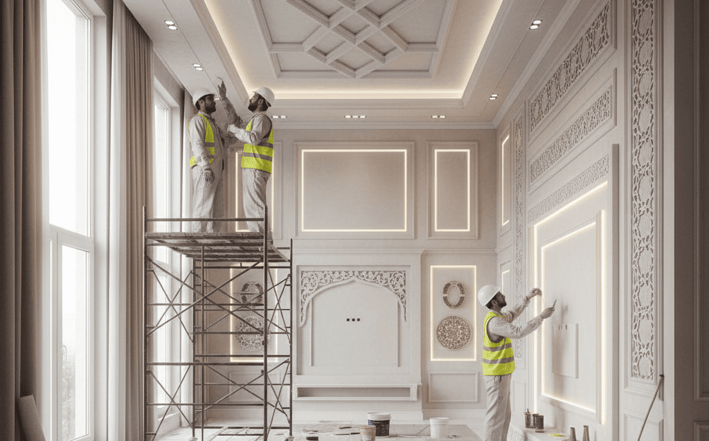 تُمكننا خبرتنا في ألواح الجبس والديكور من تحويل المساحات العادية إلى بيئات استثنائية، جامعِين بين التصميم العملي واللمسة الفنية. يُقدم لوح الجبس مرونة لا تُصدق لخلق تصميمات داخلية مُصممة خصيصًا، بدءًا من الأسقف المستعارة الأنيقة والجدران الفاصلة الديناميكية وصولًا إلى الميزات المصممة حسب الطلب التي تُحدد طابع الغرفة. نستغل هذه المرونة لصياغة جماليات راقية وعناصر معمارية مبتكرة، مُكيّفين كل حل ديكوري بشكل مثالي ليعكس اتجاهات التصميم الحديثة ورؤيتك الفريدة للمشاريع التجارية، السكنية، أو الفندقية.